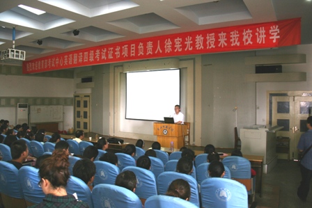 徐教授用大量的数据、实例,并结合亲身经历从项目的背景、意义、管理三个方面介绍了全国英语翻译证书四级考试,使同学们对全国英语翻译证书四级考试有了较为全面的认识。