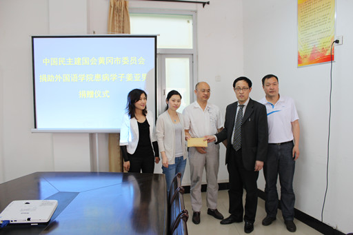 本次捐赠是由民建williamhill英国官网支部牵头,与民建黄冈市企业支部、黄冈市卫尔康医药有限公司共同捐助一万两千元用于姜亚男治病之用。
