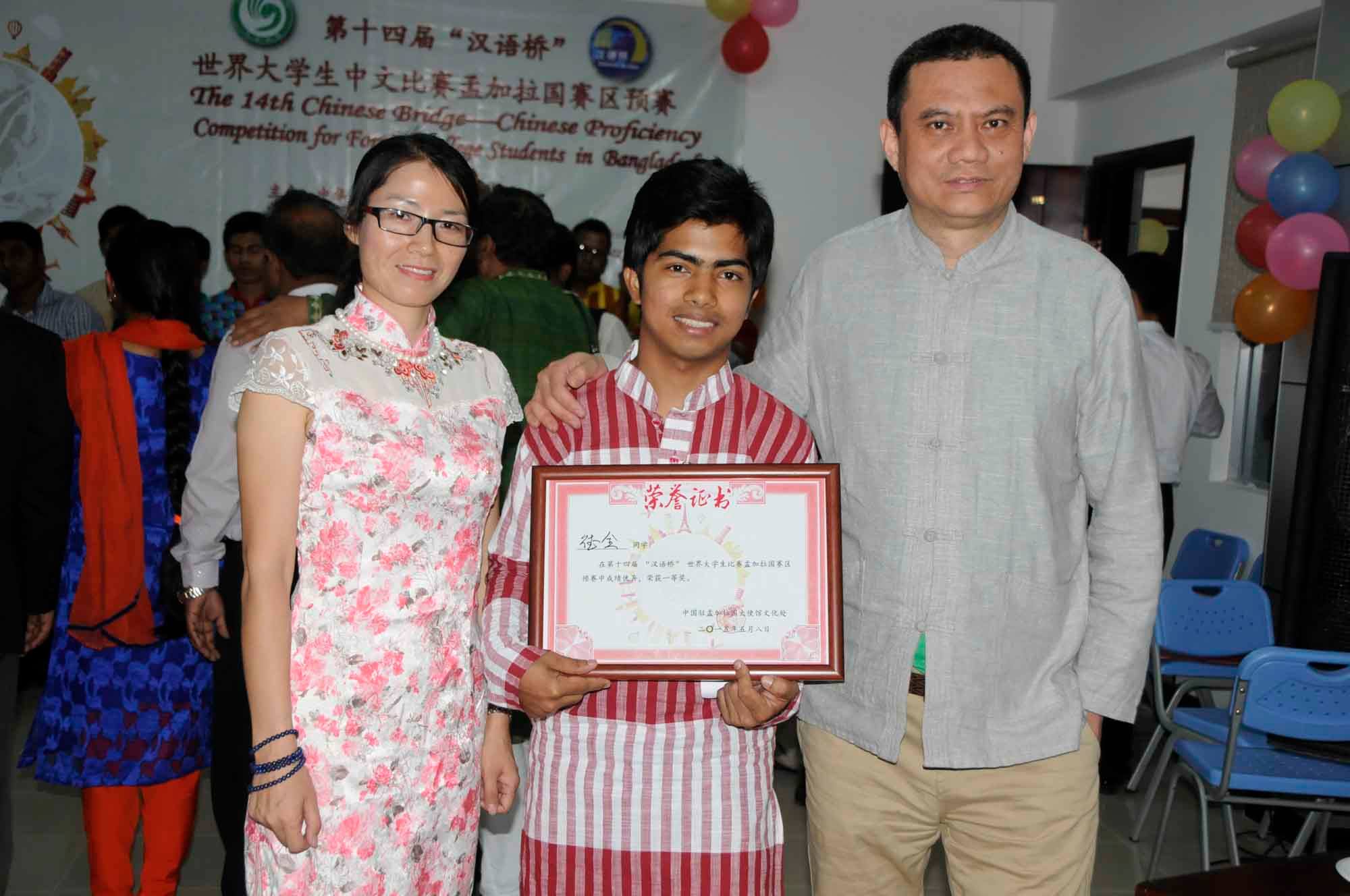 5月8日,主题为“我的中国梦”的第十四届“汉语桥”世界老员工中文比赛孟加拉国赛区预赛在孟加拉达卡大学现代语言公司的中国研究中心成功举办。有来自4所大学的32名选手参加。比赛分中文演讲、中国知识问答和才艺表演三个环节。精彩的中文演讲和紧张的问答环节博得观众的阵阵喝彩。在才艺表演环节,小品、太极剑、葫芦丝、水墨画、中国功夫等中华才艺被演绎得淋漓尽致。