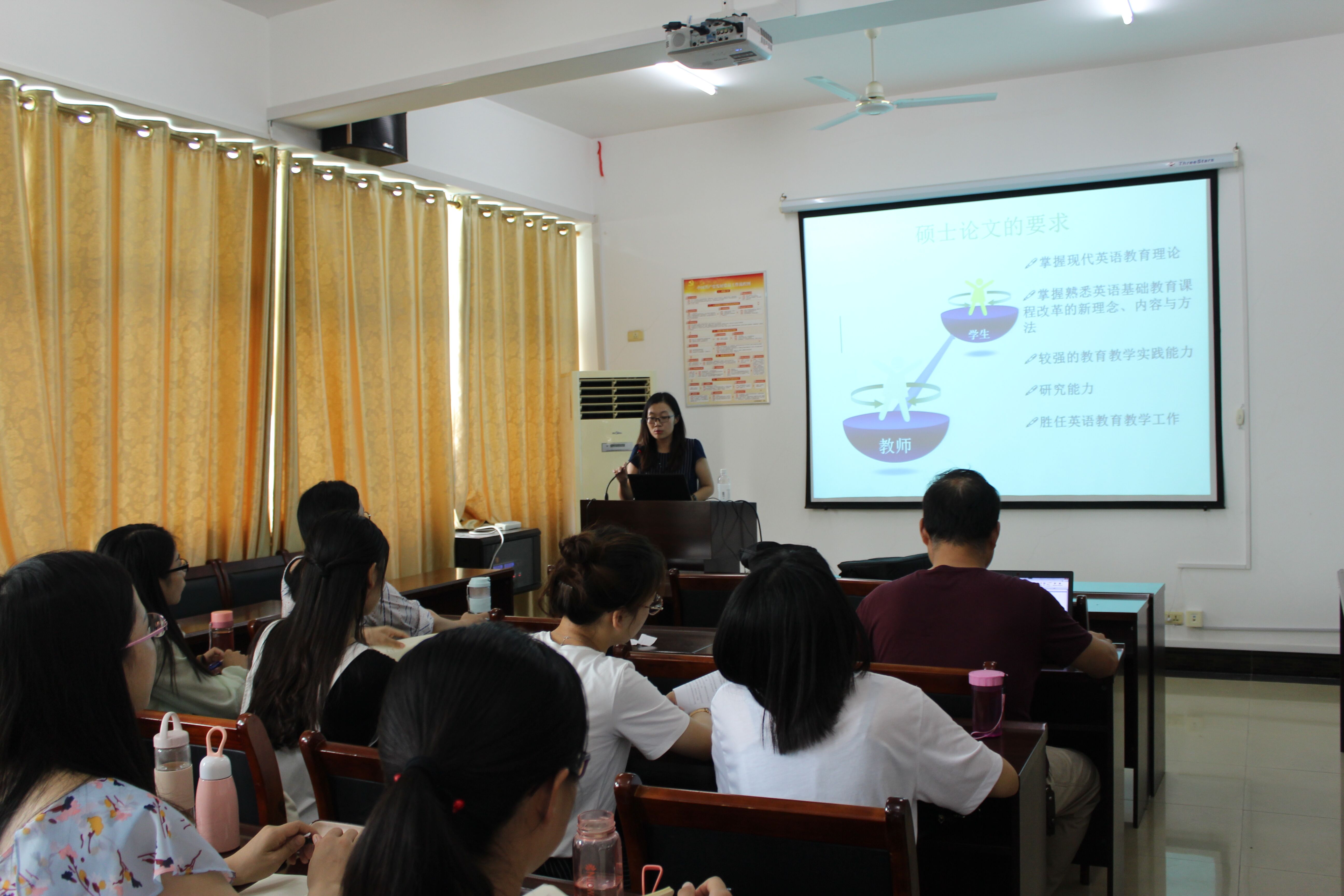 7月12日,喀什大学副教授、硕士生导师林冬梅博士在致远楼814作了一场题为“学科教学英语教育硕士毕业论文写作设计研究”的学术报告。