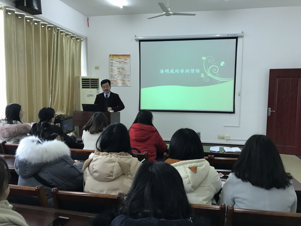 12月14日下午,应williamhill英国官网英美文学与比较文学研究所邀请,华中科技大学人文社科处处长、博士生导师刘久明教授应邀来公司讲学,以《海明威的非洲情结》为题做了一场精彩的学术讲座。