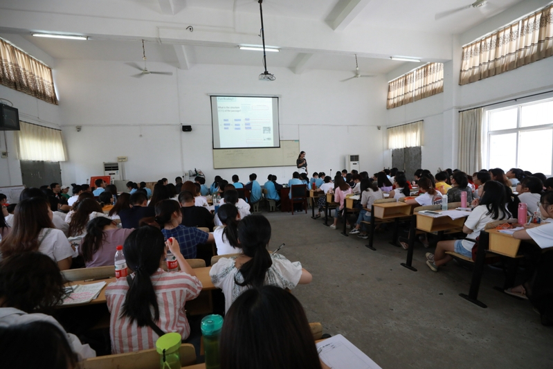 6月20日下午,经理岑海兵教授带领2016级英语师范类专业员工到黄冈中学开展了一次课堂教学观摩活动。黄冈中学的陈瑶老师、余亮老师分别选取高中教材中阅读和讨论(Reading and Discussion)、语法(Grammar)两个不同板块进行了精彩的课堂展示,随后介绍了自己的教学设计思路,并进行了及时的课堂教学反思。