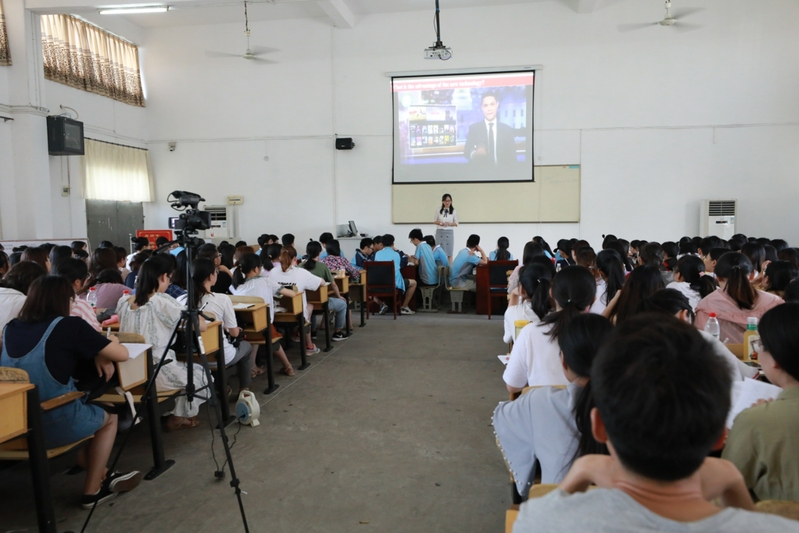 6月26日上午,经理岑海兵一行及2016级英语专业本专科生到黄冈外国语公司进行了课堂教学观摩。徐珊珊、刘佳霓两位老师展示了高中英语课堂,张婷老师结合初中教材中进行了阅读教学展示。