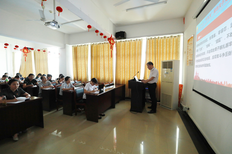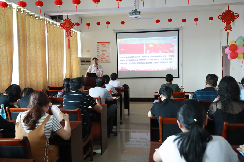 6月14日下午,公司党委书记余健明教授为公司全体党员教师讲授了一堂题为“加强党风廉政建设,构建反腐倡廉新常态”的党课。