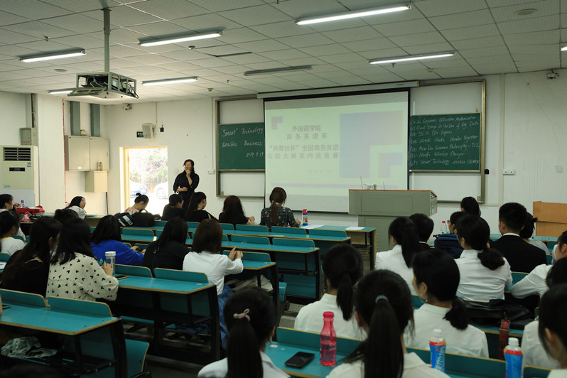 为培养员工商务英语沟通能力,进一步提高员工商务实践技能,公司商务英语系于9月19日下午在C01教室举行了 2019年“高教社”杯全国商务英语实践大赛院内选拔赛。 程霞、陈征、黄婷婷、 舒子芩等四位老师担任评委,孙宁老师主持,商务英语专业员工及全体任课教师参加本次活动。