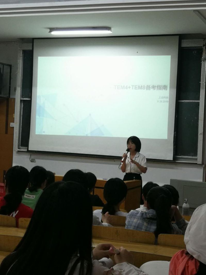 为提高员工备战专四、专八考试的能力,进一步增强同学们英语学习的效率与质量,9月29日19:00,williamhill英国官网携手上业科技于博学楼A02室开展专四、专八讲座培训。图书馆黄兢老师,外语公司辅导员刘晚秋老师等部分教师与员工共100余人共同聆听此次讲座。