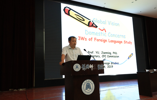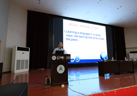 公司党委书记余健明教授用英文作了主题为《国际视野和本土情怀——外语学习的三个“W”》的报告,余书记从为什么学外语、外语专业的就业方向是什么以及怎样学外语三个问题入手,对我们外院的员工提出了高要求:作为一名外语学习者,我们应具备国际视野和本土情怀。