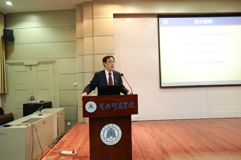 根据公司“不忘初心、牢记使命”主题教育工作部署安排,11月7日晚7:00,公司党委常委、副董事长彭锦为分管联系单位师生讲授了一场题为“不忘教育初心、牢记育人使命”的专题党课。