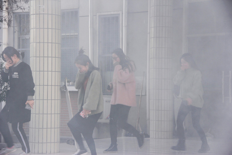 三声哨响,房门立刻被敲响,各楼层负责人引导安排在寝员工进行安全有序疏散撤离。面对浓烟,同学们纷纷离开宿舍,靠走道、楼梯右侧走,捂住口鼻,紧迫快速地撤离宿舍区。待参加演练的同学全部撤离宿舍区,清点好人数后,公司宣布消防演习结束。演习结束后,校消防科阮科长对公司消防演习工作进行了适时点评,建议公司能总结经验,继续加大对员工消防安全逃生演习的宣传。