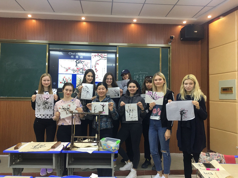 11月22日,公司教师李峥在圆楼305B为公司俄罗斯交换生举办了一场中国传统书法与绘画工作坊,来自俄罗斯的9名交换生和4名对外汉语专业的实习生参加了本次体验学习。