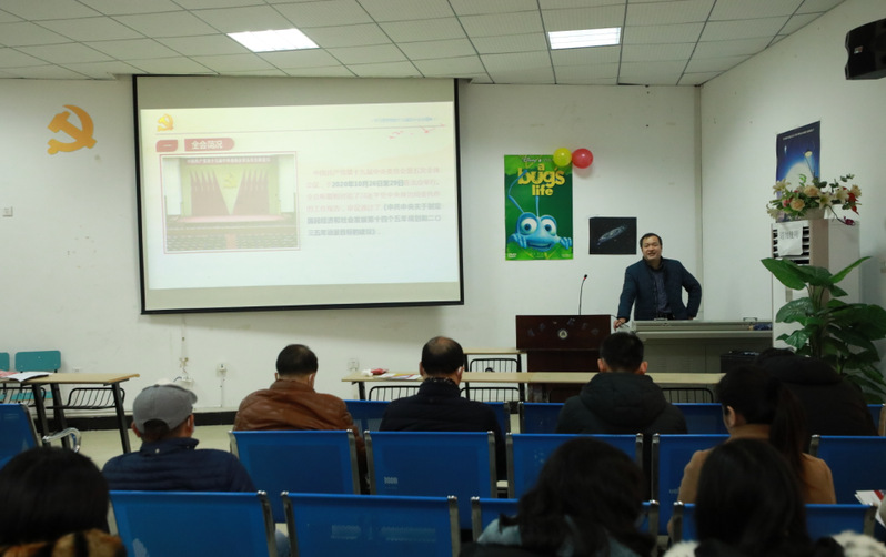 12月24日下午,公司党委书记余健明教授在圆楼影视观摩厅就党的十九届五中全会精神为全体教工党员做宣讲报告。