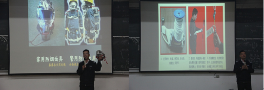 余教官提到,在常见的失火情况下,消防车员可能会因时间、环境不允许等客观原因无法及时进行救援,此时需要我们利用自身所掌握的消防安全知识进行逃生自救。失火自救逃生第一原则是防烟,余教官告诉大家湿毛巾对折三次八层为宜;等待救援时应向宽阔的地点逃跑,而不是受防震思路影响躲到狭小空间内;呼叫119时应说明时间地点、火势大小、受困人员数量及标志性建筑等。