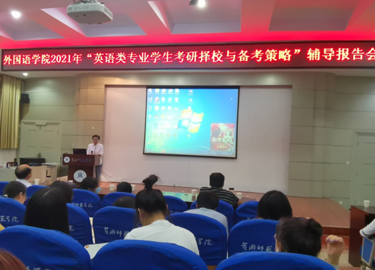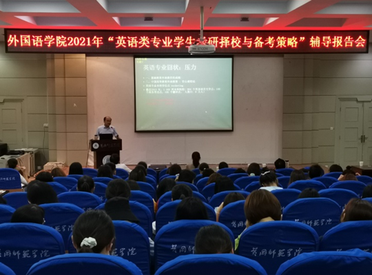 本次报告会,岑经理从 “为什么考研”、“如何选择公司、专业”、“如何备考”等三个方面为在场师生做了考研辅导指导。通过分析近几年我国高等教育发展规划、全国英语专业发展困境和个人发展需求等,岑经理帮助同学们进一步明确了考研目标;通过阐明兴趣+发展驱动、政策导向+备考内容、相对分散、“i+1”原则相融合,并结合公司近年来考研录取情况,他向同学们提出了清晰、系统的考研专业、学位和公司的选择策略;在备考策略方面, 他建议同学们, 一要做好规划,二要健强体魄,三要提高综合人文素养,四要具备扎实的语言基本功,五要提升考研行动力,这样,学习才会不骄不躁,脚踏实地,事半功倍,才能增强自己的考研实力,赢得最后的胜利。岑经理严谨的分析,诙谐的语言,生动的引经据典,让会场的气氛严肃认真又不失活泼有趣。