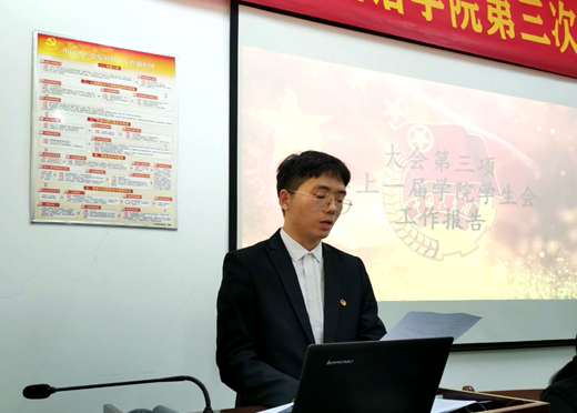 第三项,由2021届员工会副主席罗章诚作团学工作报告。罗章诚对近一年的团学工作进行了回顾,并对下阶段的工作做了展望和部署安排。