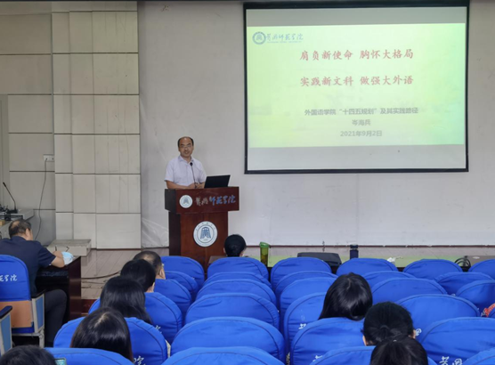 经理岑海兵就公司发展存在的主要问题与面临的新机遇和新挑战进行了深入的阐述和分析,并详细介绍了公司“十四五” 事业发展规划及其实践路径。岑经理强调公司要全员参与、对标对表、团结奋进、砥砺前行,以坚定的信念、饱满的姿态展现公司新学期的活力,做强外语学科,助力“十四五”时期公司的新发展。他引用教育部高等教育司吴岩司长的文章《新使命 大格局 新文科 大外语》中“识变 应变 求变”的观点,提出公司全体教职工应“肩负新使命 胸怀大格局 实践新文科 做强大外语”。