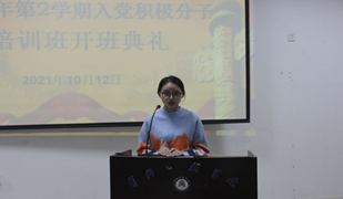 第四项,学员代表杨诗琪发言。她代表全体参训学员表示,珍惜培训机会,严格遵守培训纪律,坚定理想信念,努力提升综合能力,做符合时代要求的高素质青年。