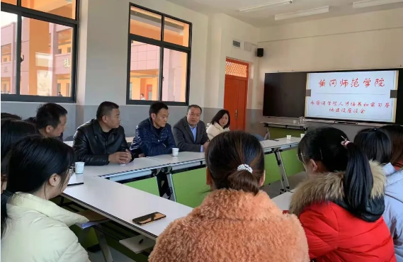 11月23日,公司党委书记余健明教授一行赴罗田看望实习生,并开展人才培养和实习基地建设调研。罗田县思源公司黄登峰董事长、王立军主任、英语教研组组长倪飞、英语组全体实习指导教师、公司实习生参加了本次座谈会。座谈会由余健明书记主持。