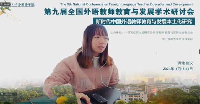 11月12-14日,第九届全国外语教师教育与发展学术研讨会在华中师范大学隆重举行,公司学科教学(英语)2020级研究生伦倚琼以“基于问题链的高中英语深度阅读教学研究”为题向大会提交论文并做交流发言。伦倚琼从高中英语阅读教学的理论基础、研究设计、研究分析等方面展示了研究成果,得到了与会师生的肯定。论坛专家针对伦倚琼的发言进行了点评,并提出了中肯的修改意见,希望她再接再厉再出成果。