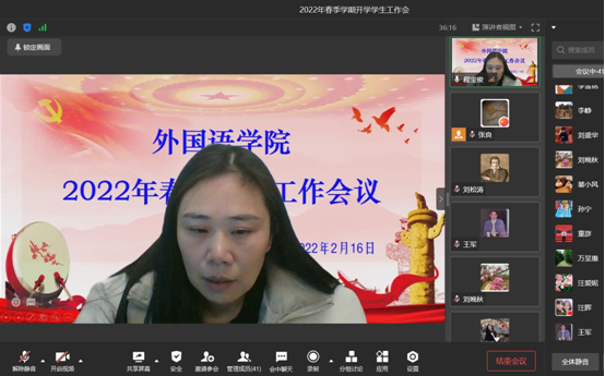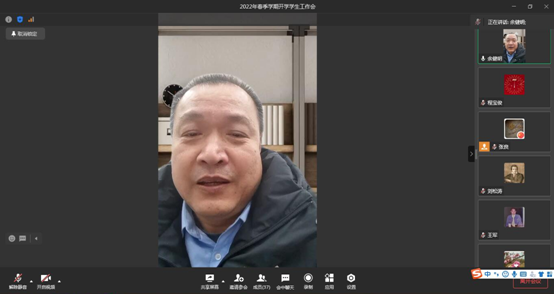 张良传达了学工部《关于做好2022年春季开学有关工作的通知》,对新学期开学的员工工作做了具体安排:一是高度重视,各班做好前期宣传、教育和提醒工作;二是严格政策,执行好疫情防控政策,做好员工的返校“申请-审核”;三是有序推进,做好开学第一堂课和宿舍的准备和检查,开好新学期开学主题班会,做好员工收心教育、安全教育、学风教育、常态化疫情防控教育等工作,妥善处理好同学们的特殊情况和实际困难。