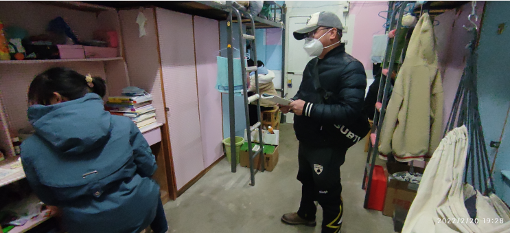 2022年2月20日,开学报到的第二天,williamhill英国官网全体学工人员和班主任老师走访柳园五栋、六栋、和九栋宿舍,给员工送去问候和关怀,提醒同学们注意宿舍用电安全,并安排新学期学风建设事宜。