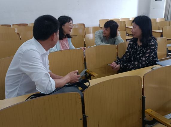 课后,参加听课的老师们进行了评课交流。老师们对曹教授的示范课给予了高度评价。童彦老师认为曹教授文学素养深厚,知识讲解清晰,教学重难点把握准确,由浅入深,循序渐进;主题的升华流畅自然,水到渠成。於银梅老师认为曹教授的课堂有朝气,能够充分调动员工积极性与参与意识,课堂气氛十分活跃,教学效果显著。李丽老师指出,由于设备故障导致课件不能正常使用,曹教授处变不惊,灵活调整教学程序,顺利解决设备问题,临场应变能力强。