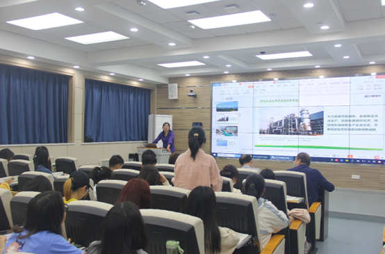 余健明向同学们介绍了胡娟老师的个人求学和工作经历,介绍了本次思政课的主题《打好实现碳达峰碳中和这场硬仗》。