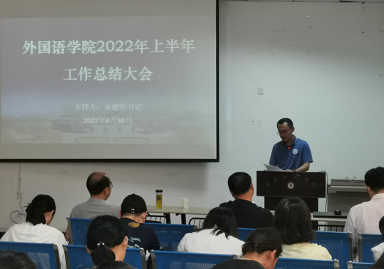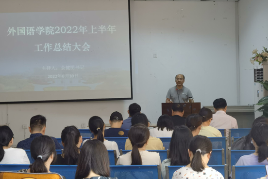 经理岑海兵从教学、科研、团队建设、国际交流与社会服务等方面总结报告上半年公司的主要工作,并对暑期工作进行统筹安排。他结合公司发展面临的新形势和挑战,部署了下半年的重点任务。岑经理指出了英语专业获批国家级一流专业建设点、教学成果奖申报、外语教育与多语服务校级学科团队获批立项等取得的主要成绩对公司和教师发展的积极意义,并强调了师范专业认证的重要性。他希望全体教职工对标争先,凝聚力量砥砺奋进,推动公司高质量发展。