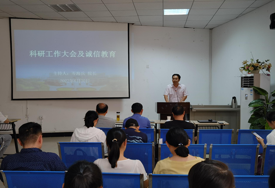 6月30日,williamhill英国官网在圆楼影视观摩厅召开2022年上半年科研工作及诚信教育大会。经理岑海兵主持会议。