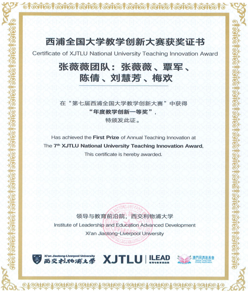 7月2日-3日,公司张薇薇老师及其团队参加了第七届西浦全国大学教学创新大赛决赛,他们的教学创新案例:从“撕辩”到“思辨”--三翻五评混合式翻译教学模式荣获大赛一等奖。张薇薇老师作为公司教师发展工作室主任,在教学创新上带头做表率,所担任的翻译课程教学经过几轮的改革迭代,成效卓著,深受员工欢迎。自成立教师发展工作室以来,张薇薇老师在团队合作共建方面取得新进展,该门课程于2021年成功获批湖北省高校一流本科课程。本次在全国大学教学创新大赛中获奖,再次发挥了教师发展工作室的团队协作优势,这是公司重视课程建设,关注教师教学能力提升的良好体现。