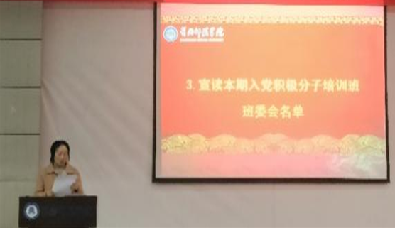 第二项:陈红亿同志宣读本期入党积极分子培训班学员名单。