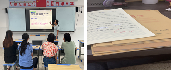 在国庆节假期前,还很荣幸去听了初一初二老师的英语公开课,因为面对的员工年龄阶段不一样,所以这两节课的教学风格还是有点不一样的。在初一课堂,老师让同学们拿出准备好的全家福,用学过的知识去描述自己的家庭成员,员工们一个个跃跃欲试,兴致盎然,非常可爱。我从其中学到了很多老师讲得也非常投入。初二的老师就更加注重阅读和口语表达水平,还给了员工们上台展现自己才艺的机会,因为本堂课的topic是关于talent的,所以也是非常的生动有趣。尽管教学方法和教学内容不一样,但是教学效果和影响都非常的深刻,这也让我对英语教学更加的感兴趣,同时也要多学习老师们的一些经验,好好充实自己!任重道远,好好加油!