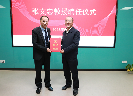 学术讲座开始前,公司于圆楼202室举行了客座教授聘任仪式。公司党委书记余健明介绍了张文忠教授的基本情况。夏庆利为张文忠颁发了客座教授聘书,并代表公司对张文忠教授来校参加活动表示热烈的欢迎,对张文忠教授及其团队长期以来对公司的支持和关心表示诚挚的感谢。