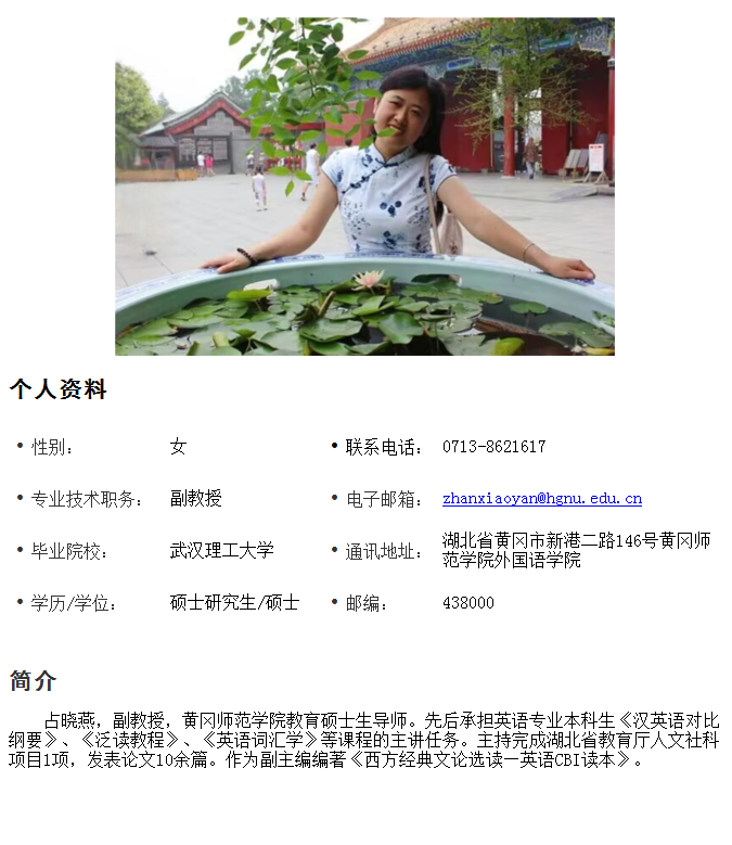 占晓燕 副教授