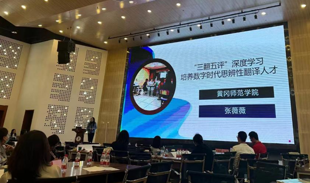 张薇薇以《“三翻五评”深度学习 培养数字时代思辨性翻译人才》为题,结合《翻译技巧与实践》国一流课程实践案例,提出构建以思辨导向的“三翻五评”深度学习模式,通过翻转学习、翻译工作坊、翻译日志的“三翻”以及小组内、组间、班级、教师、自我的“五评”,培养数字时代敏于探究、尊重事实、具有开放思想的思辨型翻译人才。
