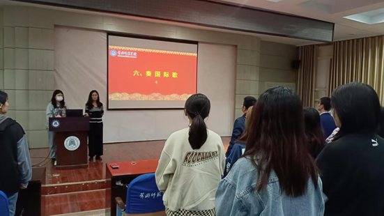 第六项 全体起立,奏国际歌。此次开班典礼在庄严的国际歌中圆满落幕。