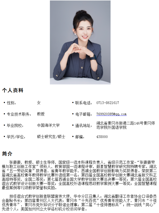 张薇薇 教授