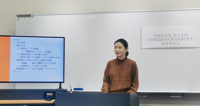 研修期间,在日方专家指导下,许圆圆以日语本科专业二年级《听力》课程为研究对象,完成了相关课题的研究,并在研修汇报会进行发言,得到了指导教师以及与会人员的赞许和认可。