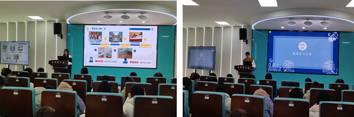 实习生代表陈思、黄旭、向刘进、明星、彭依依、舒林、谭亚平、向妮茜、鄢圣卓、曾小平、周心怡等依次回顾了过去三个月的实习经历,从师德体验、教学实践和班务育人等多个方面总结了实习收获,表达了对各自实习公司、指导老师、带队老师的深切感谢。沐光而归,逐梦前行,行而不辍,履践致远。即使短暂的实习生涯结束了,但同学们依然走在追光的道路上,未来将不忘初心,秉持教育情怀,追求卓越,勇攀高峰,带着对教育的无限热情迈向美好未来。