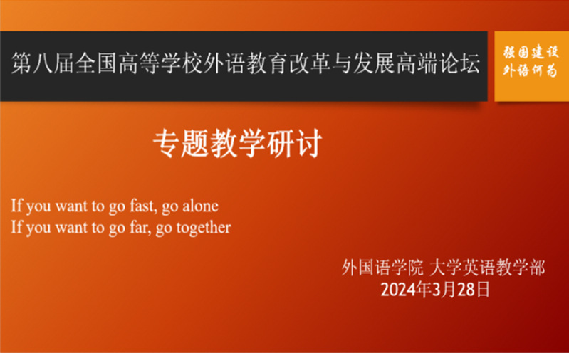 本次线上学习和集中研讨不仅提升了老师们对外语教育改革与发展方向的理解,更加深了老师们对大学英语教学改革发展中“危”与“机”的认识。大家一致认为,作为教师,我们需要保持终生学习的状态,积极探索新的教学方法和手段,利用信息技术提升教学效果和学习体验,全面提高育人质量。