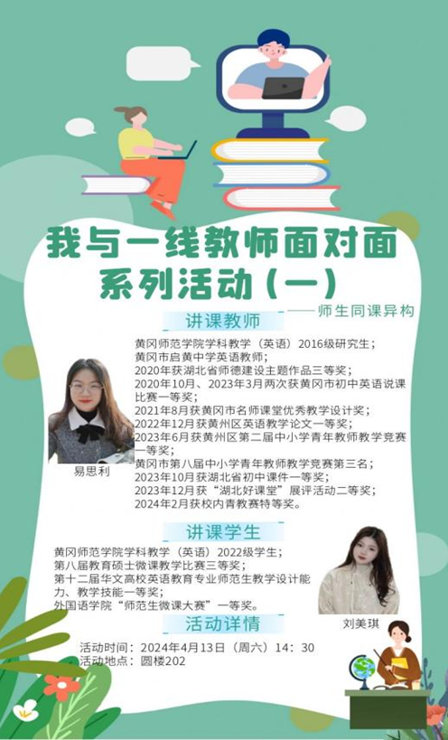 本期“我与一线教师面对面”将邀请到黄冈市启黄中学易思利老师和公司2022级学科教学(英语)刘美琪同学开展同课异构活动,旨在带领员工深入了解教学实践,共同探讨公司产品真问题。
