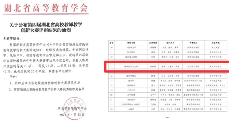 4月20日-21日,第四届湖北省高校教师教学创新大赛在华中农业大学圆满落幕,公司张薇薇老师课程团队(团队成员:陈倩 刘慧芳 蔡演)斩获新文科正高组湖北省特等奖,将代表湖北省参加全国决赛。这是此项赛事举办以来公司取得的最好成绩。