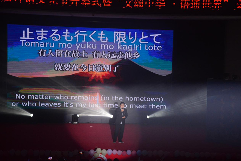 日语歌曲《萤之光》深情开嗓,现场掌声雷动。