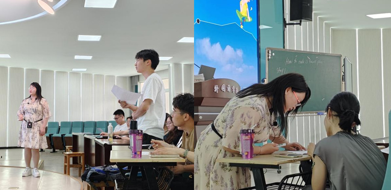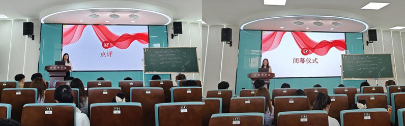 於银梅老师在吴珊珊老师的教学展示后进行了总结,她鼓励同学们学习吴老师幽默而大方的授课方式和流利标准的英语口语。张慧芳老师对吴老师百忙之中抽出时间参加活动表示感谢,希望同学们加强学习,并善于将理论运用到实践中。李丽老师、占晓燕老师也分享了本次听课感受。