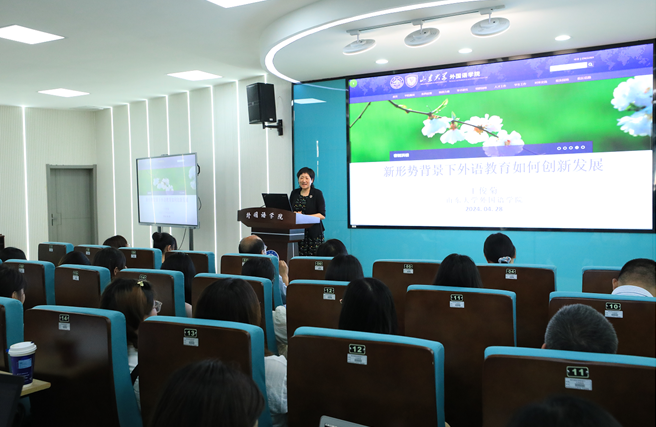 王俊菊教授围绕新形势要求什么、外语教育怎么变、外语人该怎么干、立足当下怎么办等四个方面展开讲座。以全面理解和贯彻国家方针政策为切入点,王教授深入剖析了新形势下外语教育面临的挑战与变革。她指出,新时代对外语人才提出新要求,外语人才的内涵和范畴发生深刻变化,高素质复合型外语人才已成为国家战略急需人才。她强调,外语教育要服务中华民族伟大复兴,要从跨文化交际走向文明互鉴。外语人要以新文科理念为引领,树立语言资源观,提高数字读写能力,具备能讲、善讲中国故事的国际传播力和全球胜任力,成为全面发展的人、堪当大任的人。