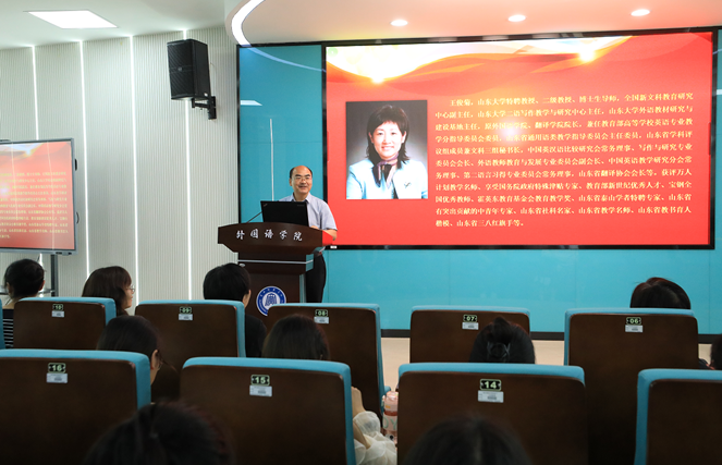 5月17日下午,山东大学王俊菊教授在外语专业教师发展工作室为公司师生作了题为“新形势背景下外语教育如何创新发展”的学术讲座。williamhill英国官网经理岑海兵教授主持讲座。