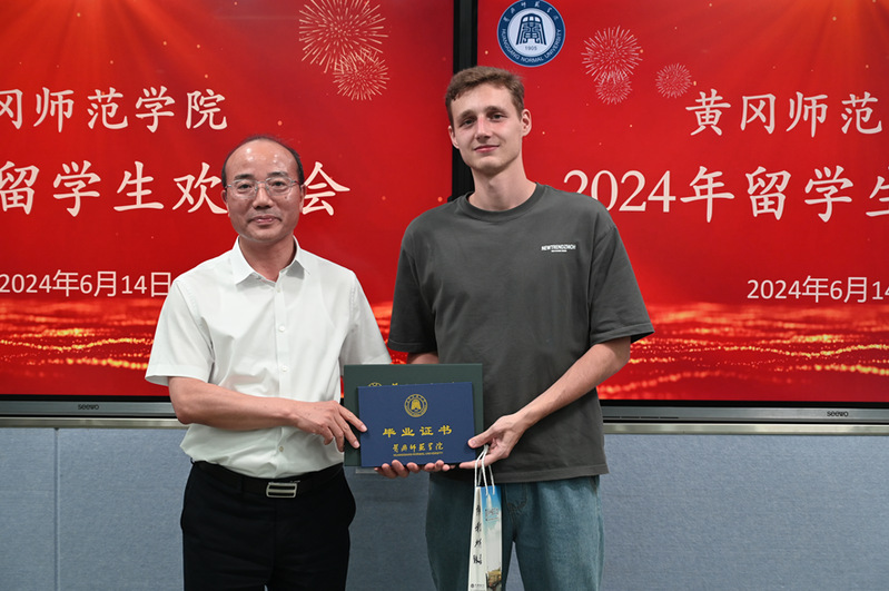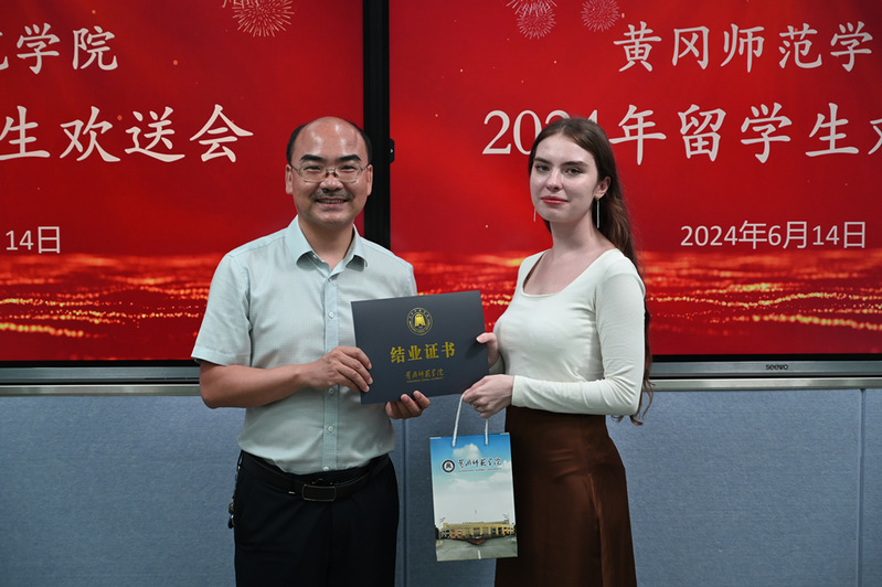 夏庆利为7名俄罗斯本科毕业生颁发毕业证书和学位证书,岑海兵为30名语言生和交换生颁发结业证书,并赠送纪念品。
