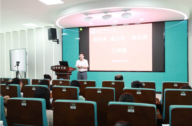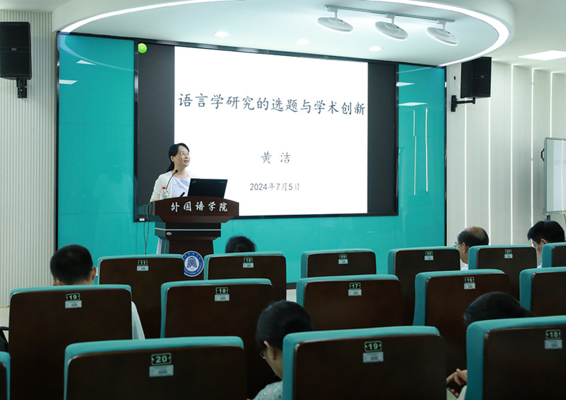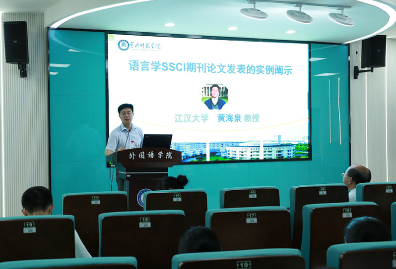 特邀报告环节,上海外国语大学王雪梅教授、华中科技大学王树槐教授、江汉大学黄海泉教授、华中科技大学黄洁教授分别作了题为《新质生产力与高质量发展背景下的外语研究与教师专业发展》《读经典,通方法,得收获》《语言学SSCI期刊论文发表的实例阐示》《语言学研究的选题与学术创新》的主旨发言。