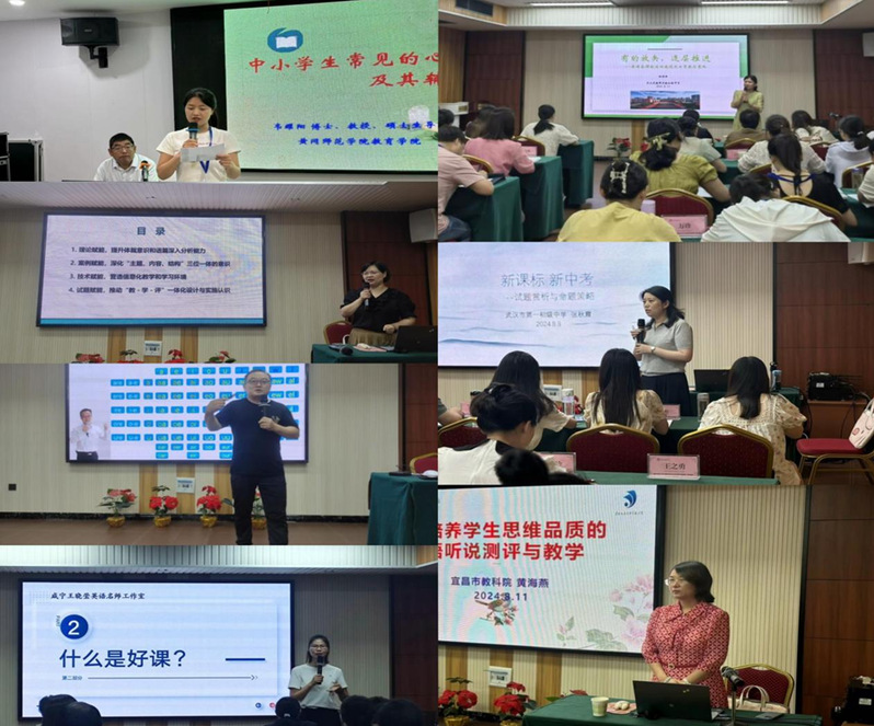 培训期间,来自黄州中学高级教师舒宝意、williamhill英国官网教育公司韦耀阳教授、武汉东湖高新区教研员高娟、枣阳市教学研究室主任陈光辉、武汉市第一初级中学高级教师张秋霞、赤壁市教科院教研员王晓莹、武汉市武珞路中学高级教师杜丽君等专家通过专题讲座、案例分析、实践操作等形式,为参训教师带来了前沿的教学思路和实用的教学策略,有效助力了初中英语教师教学水平和专业素养的提高。