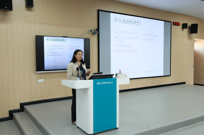 报告从什么是质性研究开始,阐述了质性研究的定义和特点,讲解了质性研究适用的情境、对研究人员的要求,及质性研究常用的研究方法。杨鲁新教授分类梳理了不同的质性研究方法,结合丰富的研究案例及自身研究经验详细解析了质性研究方法在外语教学研究中的应用、实施,并重点介绍了访谈的设计与数据分析管理。在交流互动环节中,杨教授针对与会师生关于教学研究中遇到的问题逐一进行了悉心指导和耐心答疑。