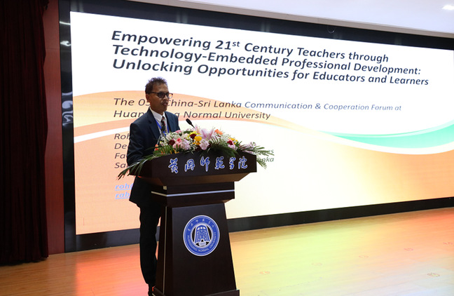 (斯里兰卡萨伯勒格穆沃大学罗汉•阿贝维克拉马博士作题为“Empowering 21st Century Teachers through Technology-Embedded Professional Development: Unlocking Opportunities for Educators and Learners”的主旨报告 )